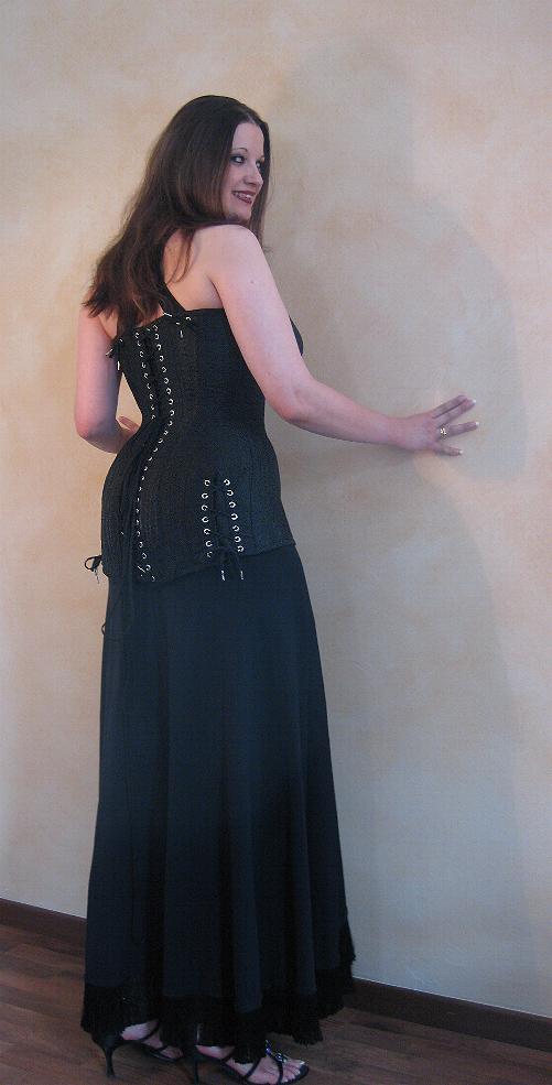 Das Korsett 'Emotion' in Kombination mit einem langen schwarzen Rock, - erstmalig präsentiert und gleichfalls Bestandteil einer Abendgarderobe auf dem 16. Ball von 'Les Gracieuses Modernes' in Neuss.