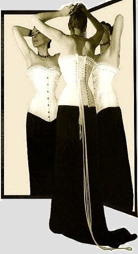 Die Schnittführungen sorgen dafür, daß das Korsett ein "Zuhause" für die Trägerin wird. Je nach Körperform werden, auch für die ungeübte Trägerin, zwischen 10cm und 15cm Schnürung ermöglicht, wenn bestimmte Gesetzmäßigkeiten eingehalten werden.